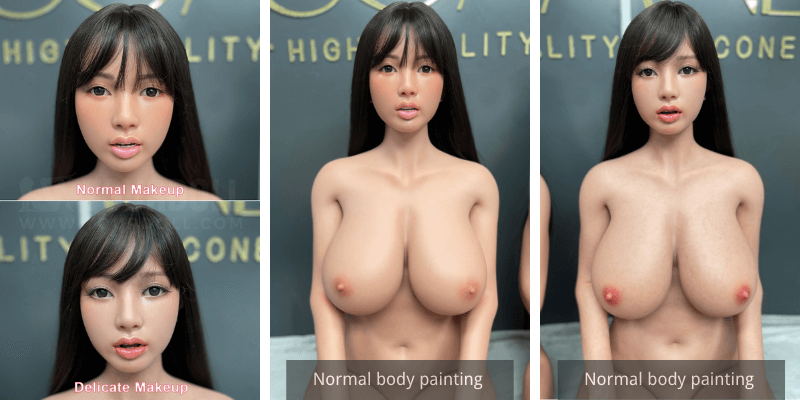 The following pictures show the comparison of normal and delicate makeup and body painting.